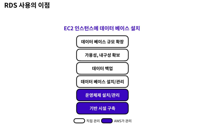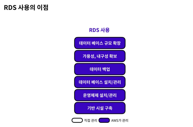 - 물리적으로 설치해도 되지만 RDS를 사용하면 스냅샷을 찍어놓기 때문에 DB에 문제가 생길 경우 손쉽게 롤백을 할 수 있고 보안설정도 보다 간편하게 할 수 있다.
