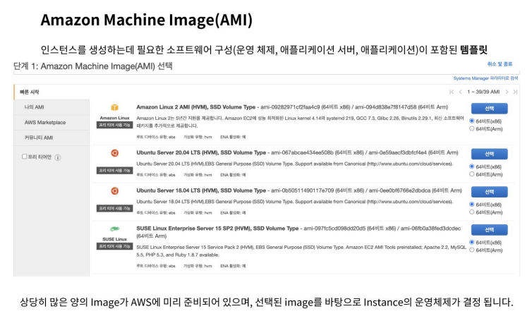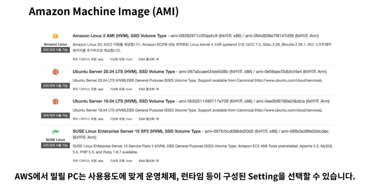 : AMI를 통해서 운영체제까지 설치되어있는 Virtual Machine 을 빌릴 수 있다.